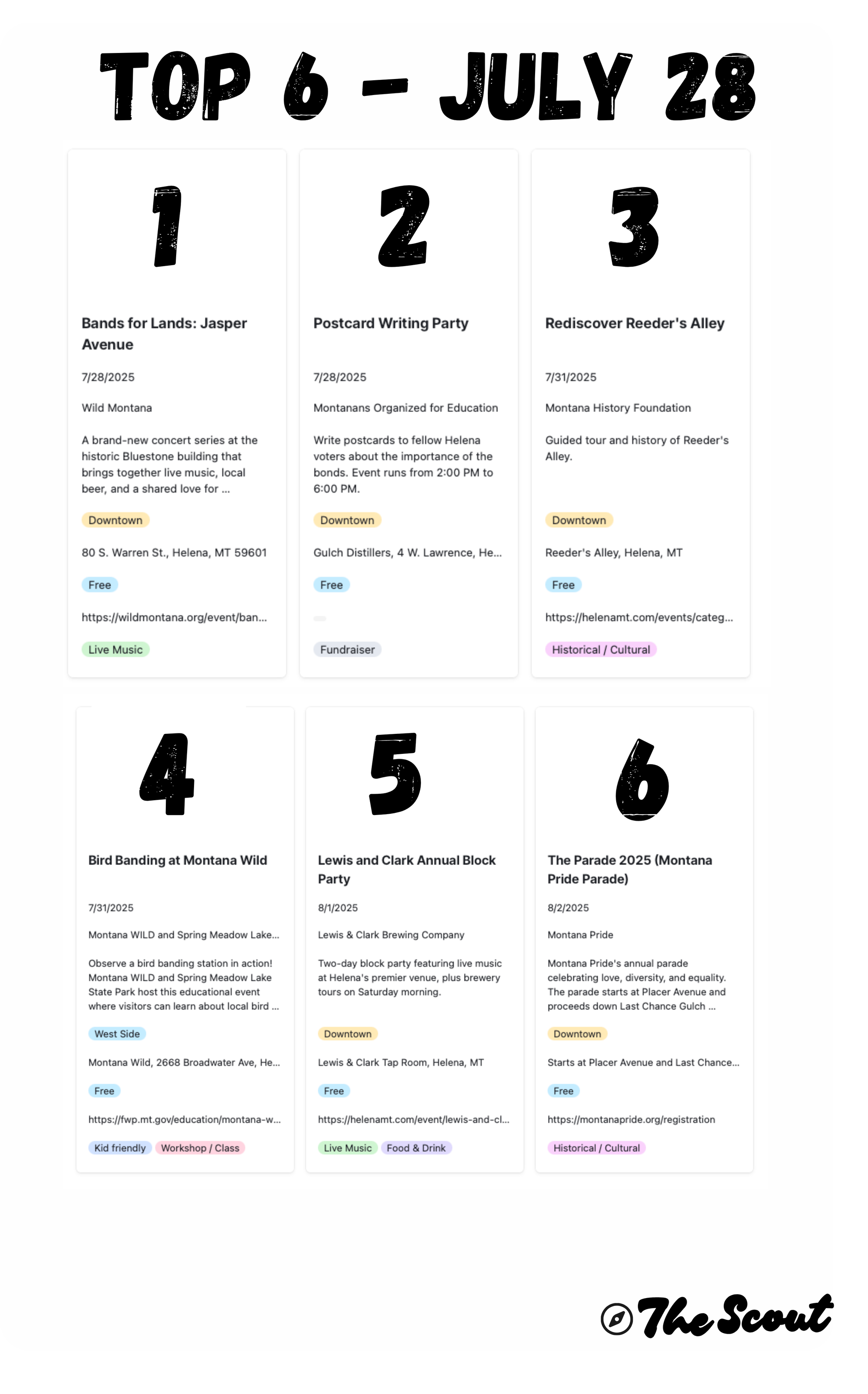 📅 Here's our Top 6 for the week of July 28th, 2025. Want full details, times, and links...? 👉 Check out our Event Vault.